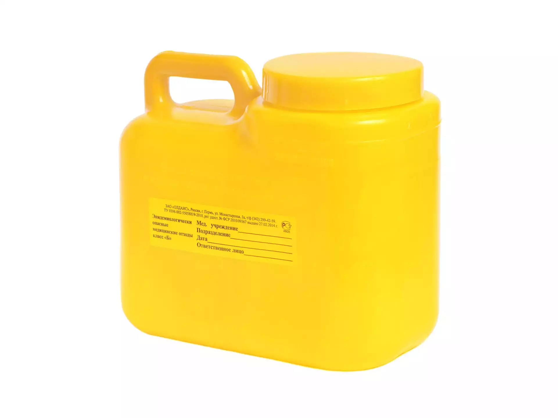 Емкость-контейнер для сбора био. материала (класс Б), объем 3,0л, одноразовая, резьбовая крышка, ОЛДАНС (РОССИЯ)