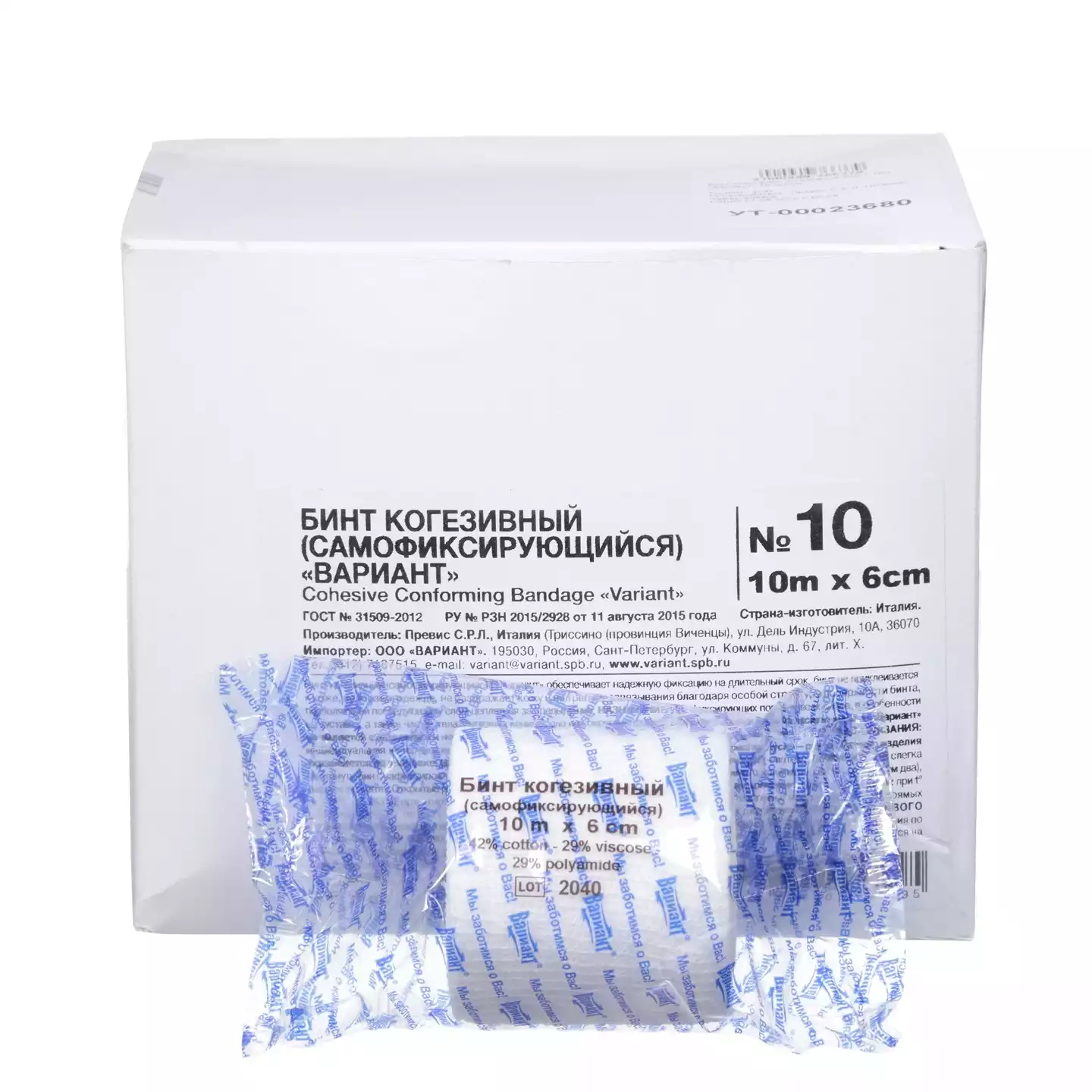 Бинт эластичный "Вариант" cамофиксирующийся когезивный, размер 10м*6см, упаковка 10шт, цвет белый, Превис С.Р.Л. (Италия) (ИТАЛИЯ)