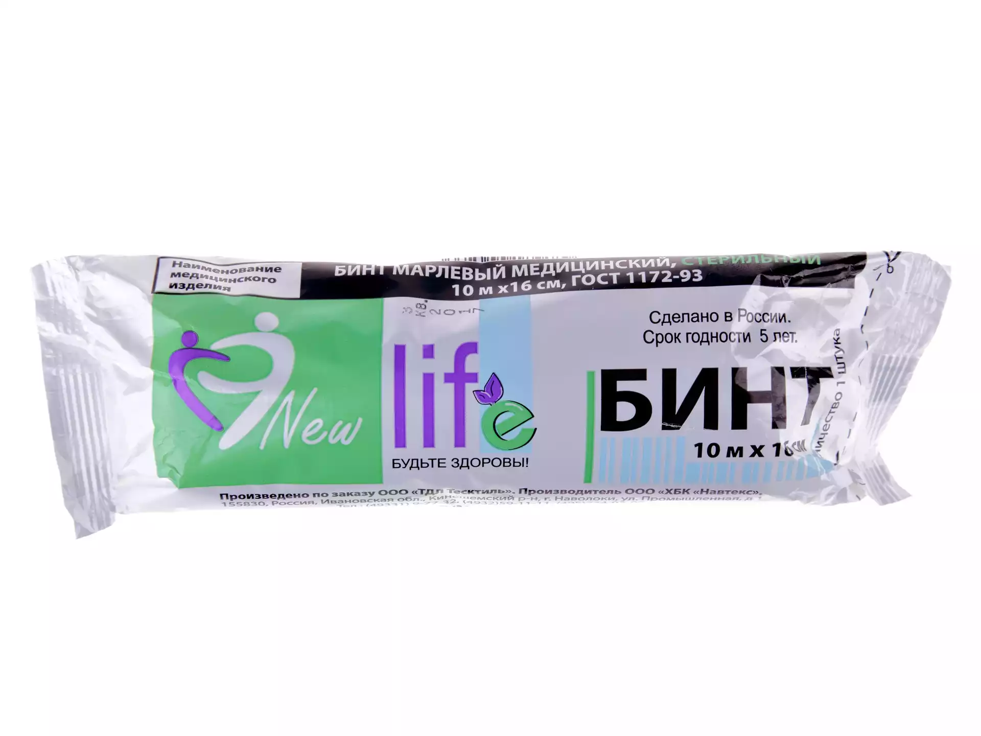 Бинт марлевый, размер 7мх14см, Ньюлайф, плотность 30г/м2, стерильный, Навтекс ХБК (РОССИЯ)