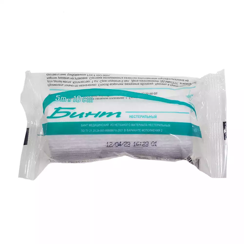 Бинт нетканный, размер 5м*10см (полиэфир 50% + хлопок 50%) нестерильный, инд.упаковка, РусВата (РОССИЯ)