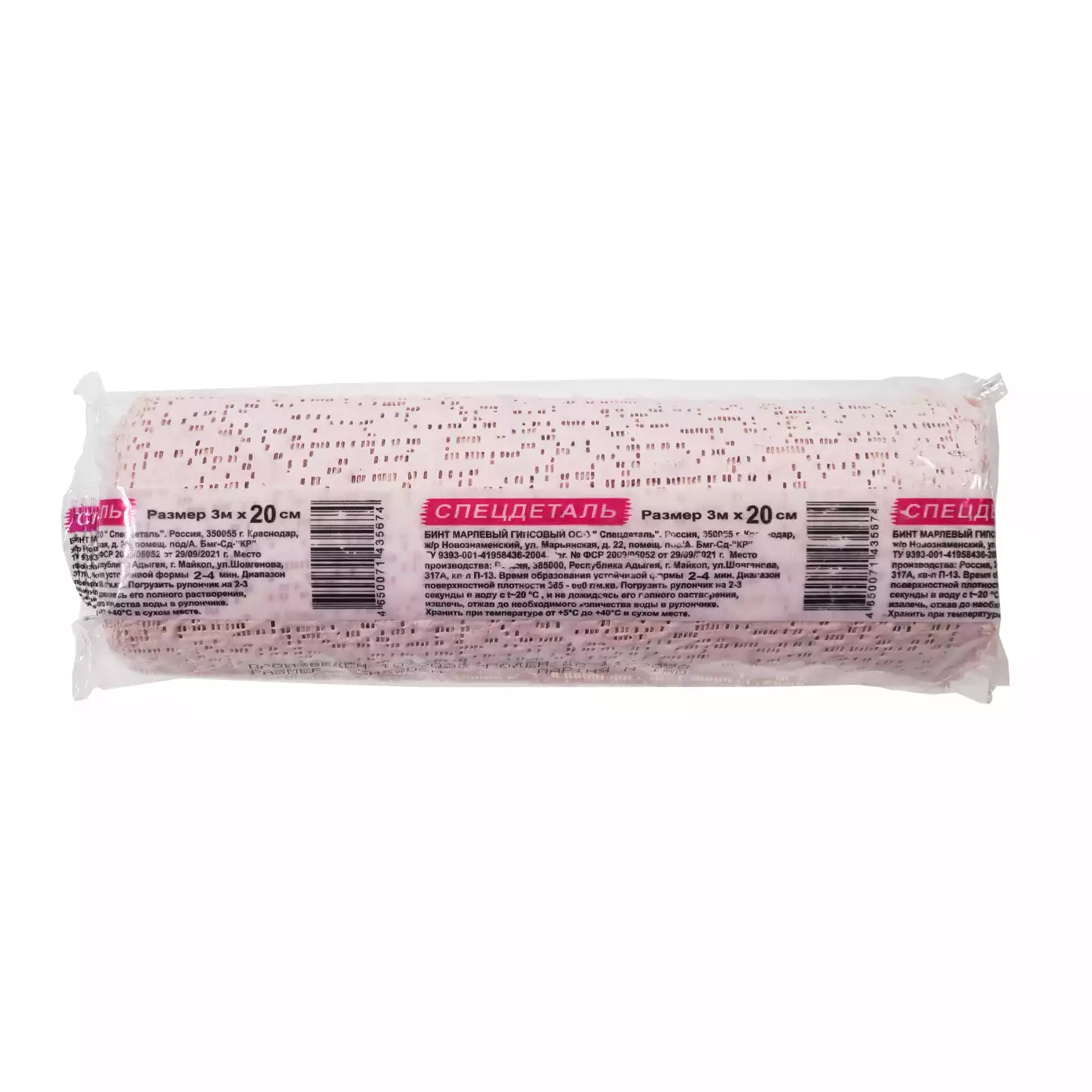 Бинт 3м*20см, гипсовый, время схватывания 2-4 минут, Спецдеталь (РОССИЯ)