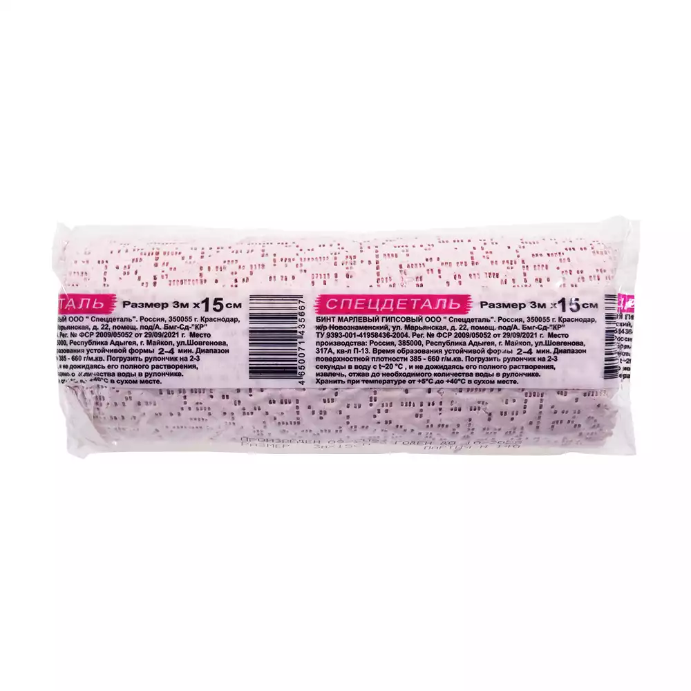 Бинт 3м*15см, гипсовый, время схватывания 2-4 минут, Спецдеталь (РОССИЯ)