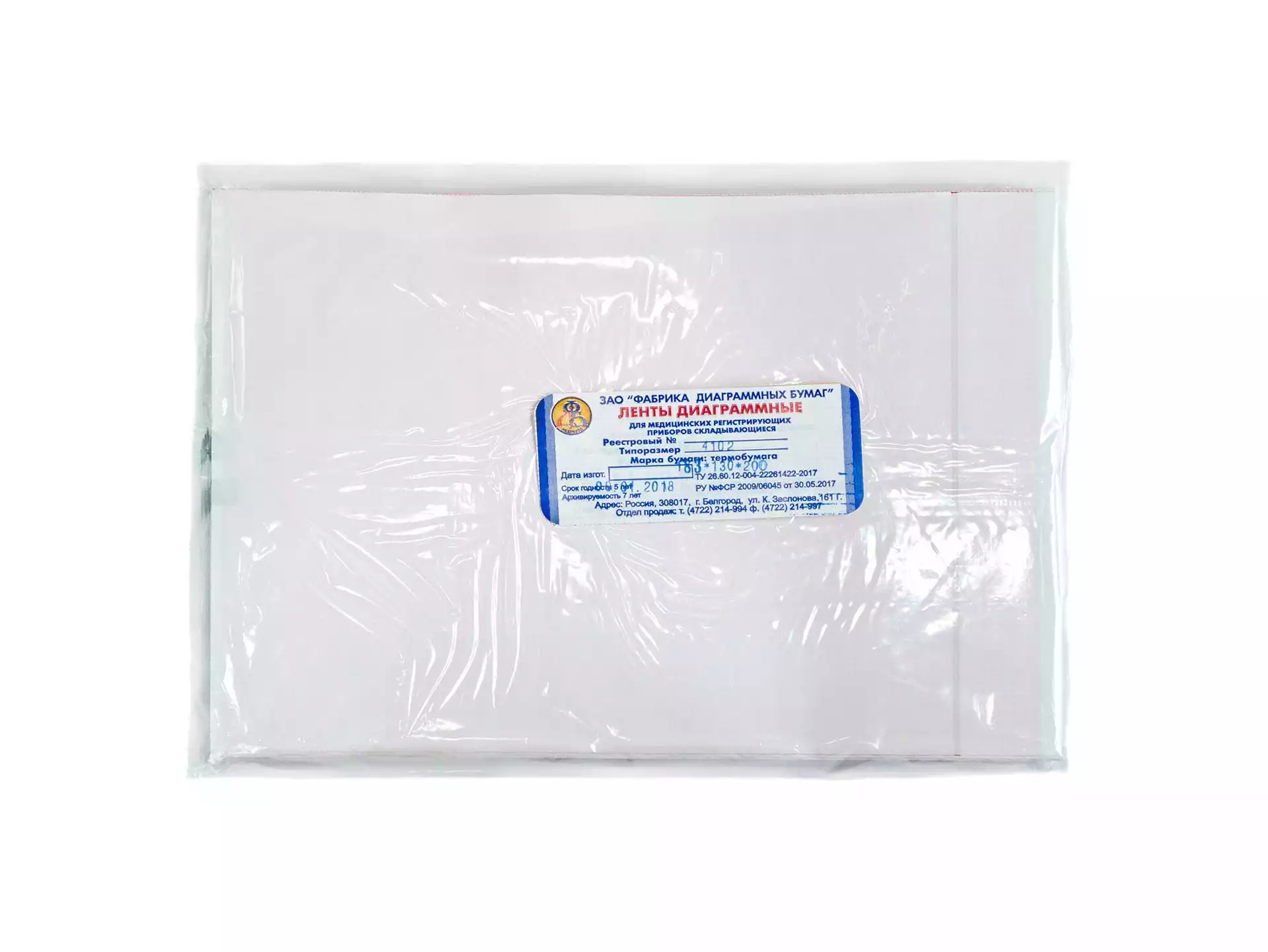 Бумага для ЭКГ (183*130*200)М, пачка 4,76м2, лента, регистрирующая для медицинских приборов, Фабрика диаграммных бумаг (РОССИЯ)