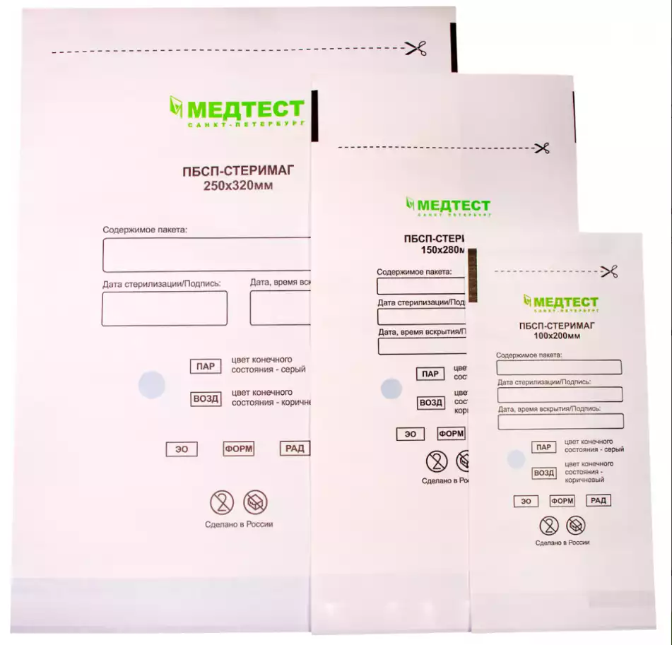 Самоклеящиеся пакеты из крафт-бумаги для стерилизации ПБСП-СТЕРИМАГ, 150*200 мм , 100 шт/упак, Медтест (РОССИЯ)