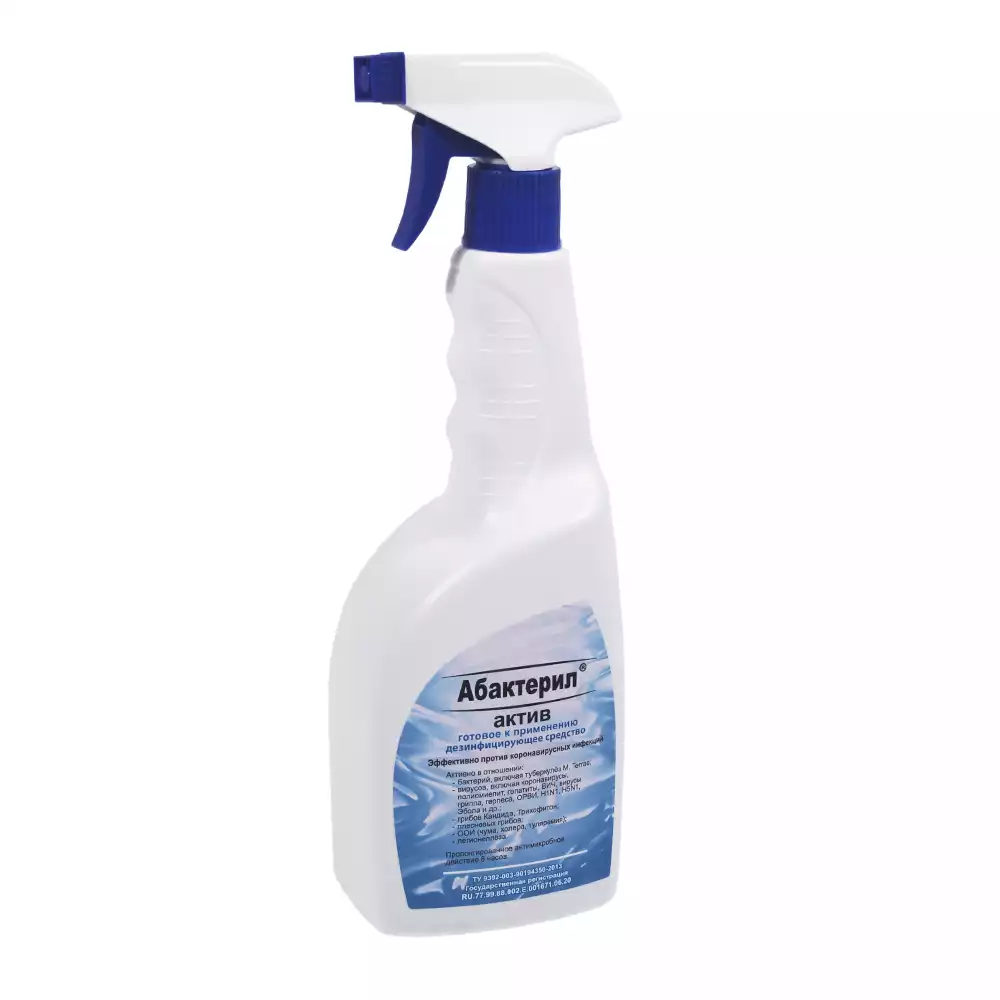 Абактерил - АКТИВ объем 0,75л, с триггером, кожный антисептик и дезинфектант для поверхностей (готовый раствор), изопропиловый спирт – 64,0%, Рудез (РОССИЯ)