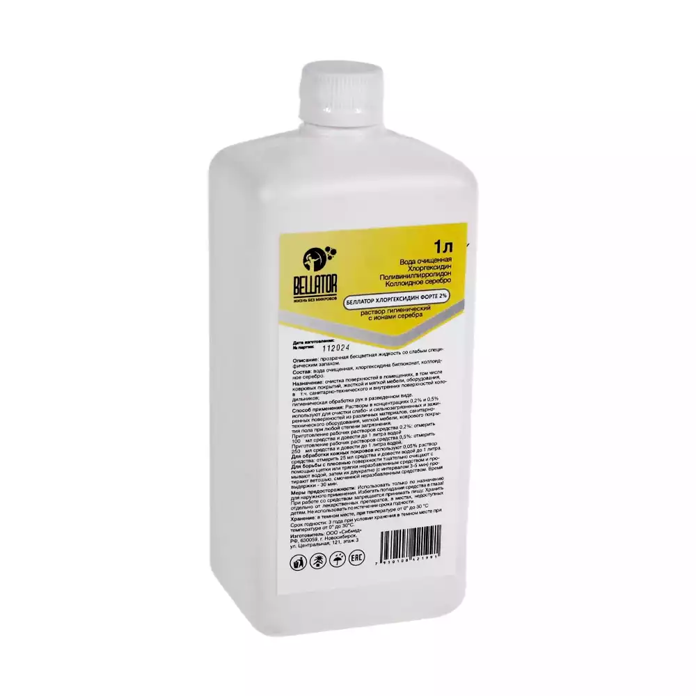 Беллатор-Хлоргексидин Форте 2%, объем 1,0л концентрат, средство дезинфицирующее с антибактериальным эффектом, ООО Сибмед (РОССИЯ)