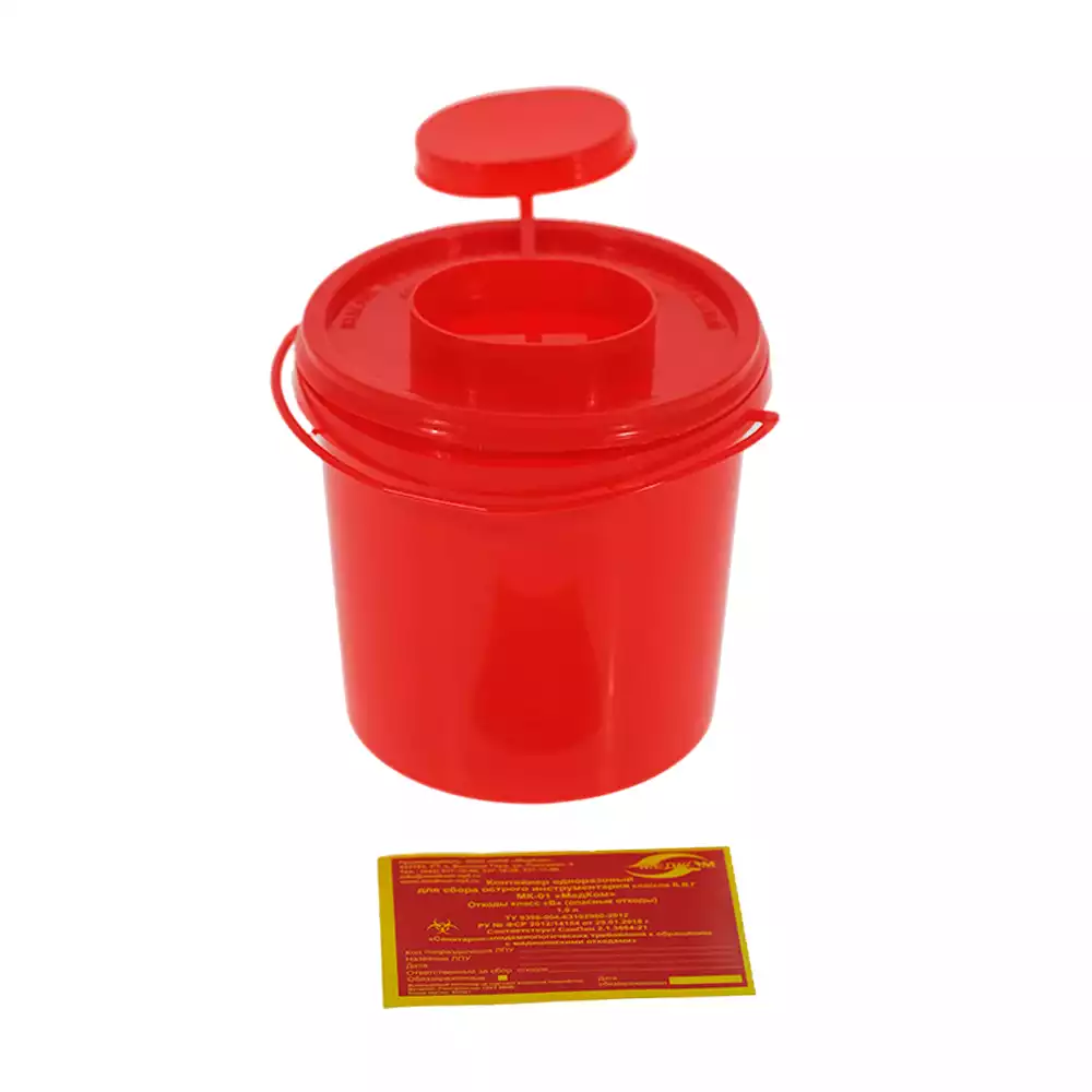 Емкость-контейнер для сбора острого инструментария (с иглосъемником), объем 1,5л (класс В), красная, одноразовая, Респект ГК (РОССИЯ)