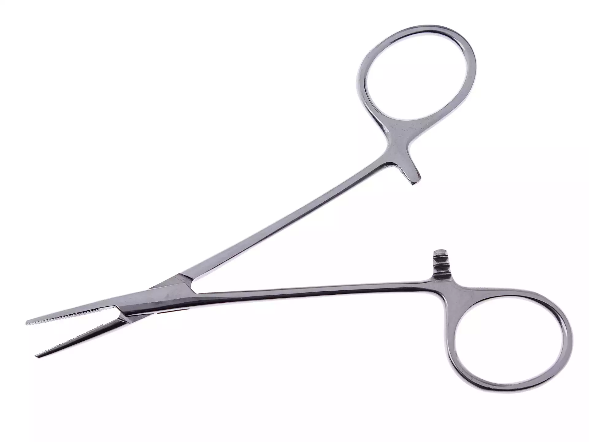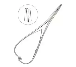 Иглодержатели бывают разных размеров и форм, в зависимости от типа операции и размера иглы. Могут быть прямыми или изогнутыми, с зубчатыми или гладкими губками.