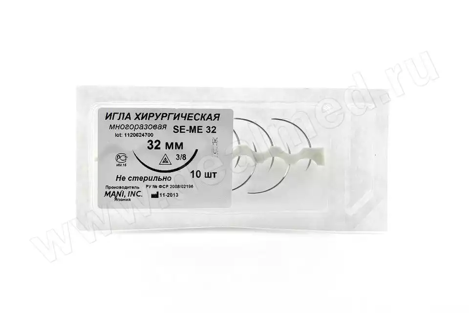 - Многоразовые хирургические иглы используются в операционных процедурах для наложения швов на раны или для выполнения других хирургических манипуляций.