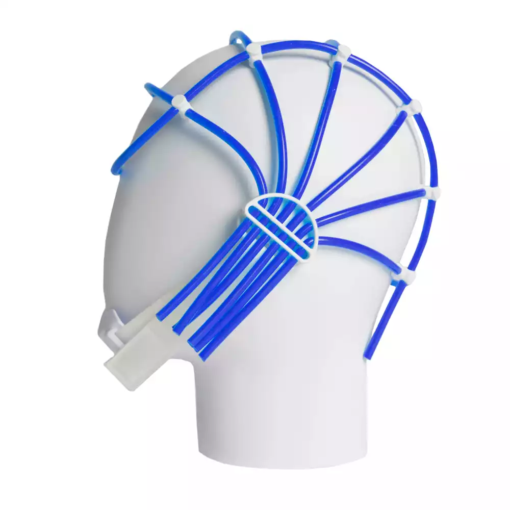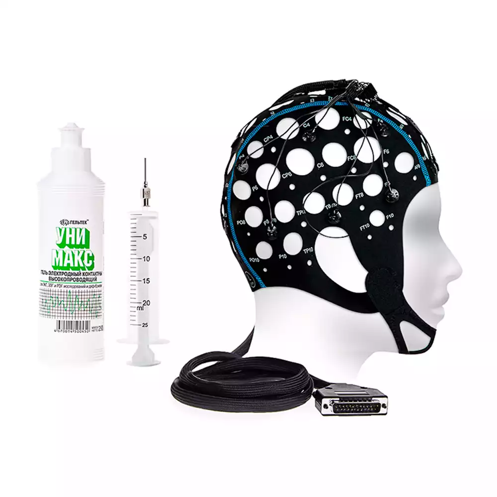 Шлемы, используемые в ЭЭГ и ТМС, предназначены для фиксации электродов на голове пациента, обеспечивая стабильный контакт и точность измерений. Шлемы могут быть разных размеров и конфигураций для обеспечения комфорта пациента и соответствия требованиям процедуры.