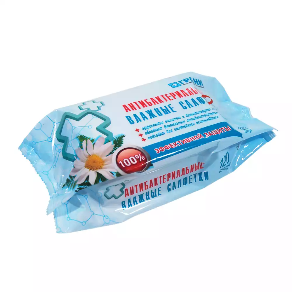 Салфетки влажные с антибактериальным эффектом, размер 15*15см, упаковка 120шт, Грани (РОССИЯ)