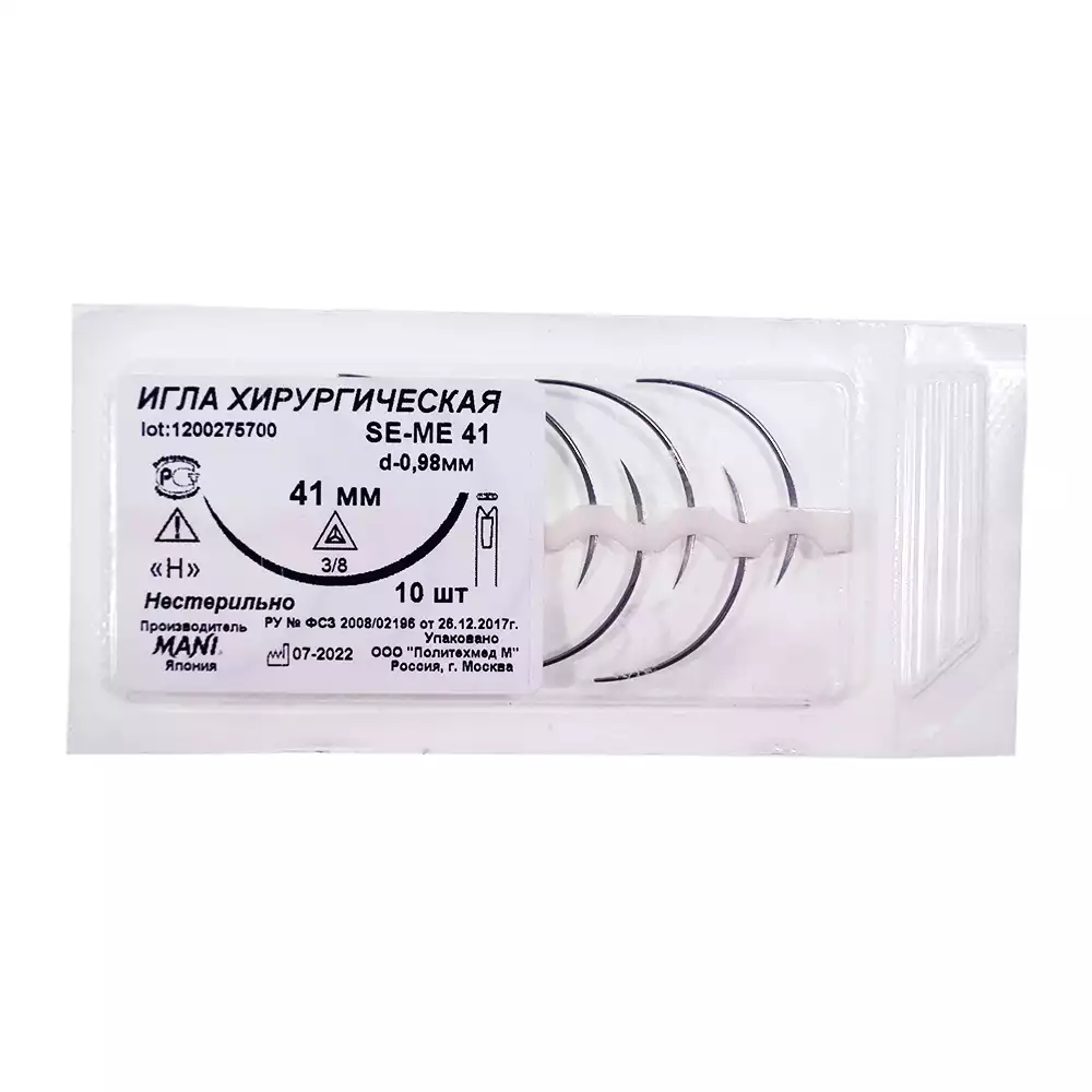 Игла хирургическая многоразовая режущая MANI SE-MЕ 41, 3/8 (0,98*41мм), Mani, Inc. (ЯПОНИЯ), 10 шт