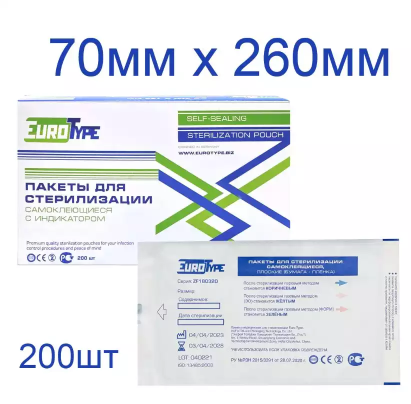 Пакет СтериТ, размер 60*100мм, комбинированный, самоклеющийся, упаковка 100шт, ООО Террамед (РОССИЯ)