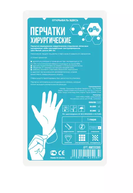 Перчатки IMS хирургические, размер 7,0 латексные неопудренные текстурированные, стерильные, упаковка 50 пар, Zhonghong Pulin Medical Products Co., Ltd (КИТАЙ)