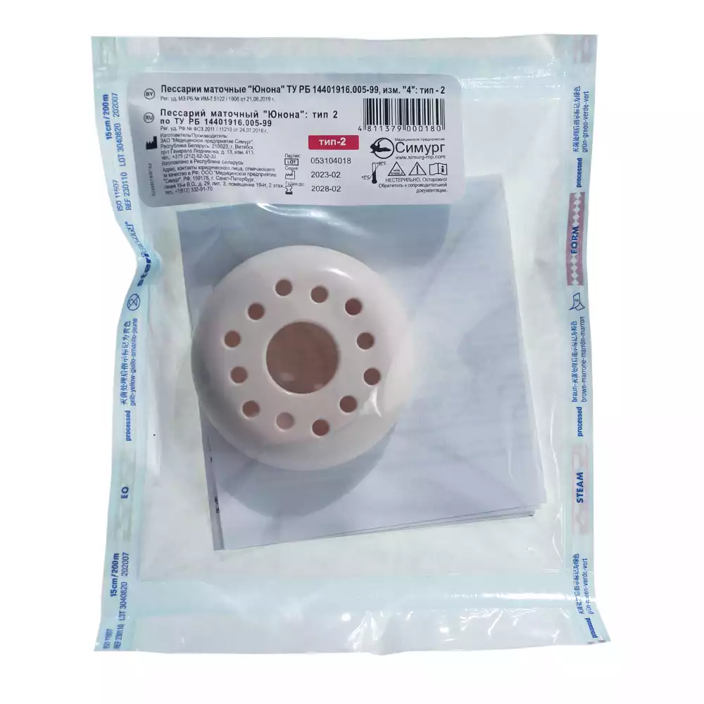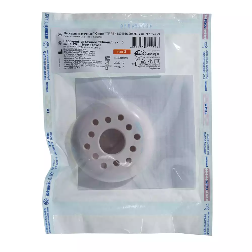 Пессарий маточный "Юнона", тип 1, наружный диаметр 63 ±2,5см, Симург Медицинское предприятие (БЕЛАРУСЬ)