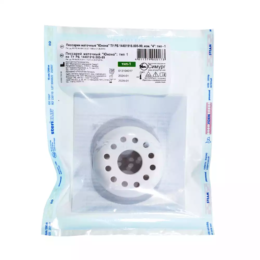 - Гипоаллергенный материал с высокой биосовместимостью, устойчивый к дезинфицирующим растворам. Силиконовые пессарии можно стерилизовать автоклавированием при температуре 121°С.