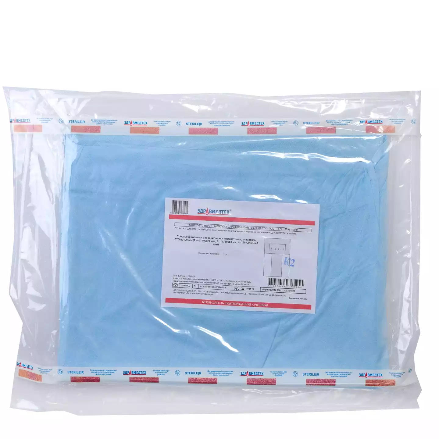 Салфетка 60*60см, СМС 25г/м2, стерильная, голубая, Инмедиз (РОССИЯ)
