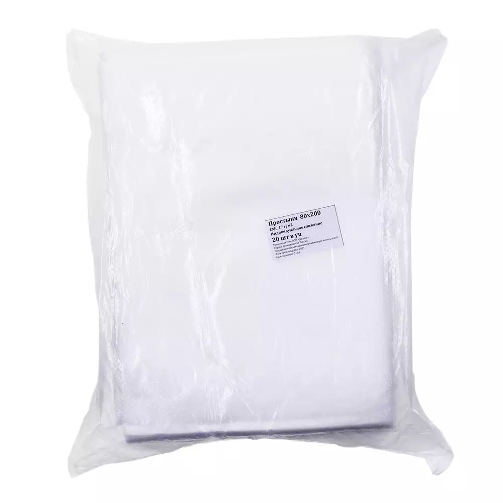 Простыня 80*200см, материал СМС 17г/м2, нестерильная, белая, индивидуальное сложение, Диалог (РОССИЯ)