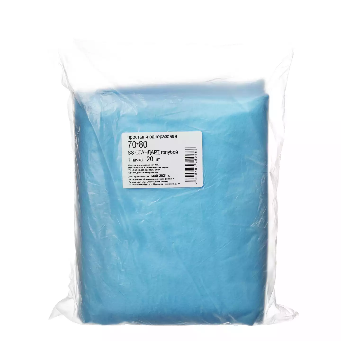 Простыня 70*80см, материал Спанбонд 14г/м2, нестерильная, голубой, Белая линия (РОССИЯ)