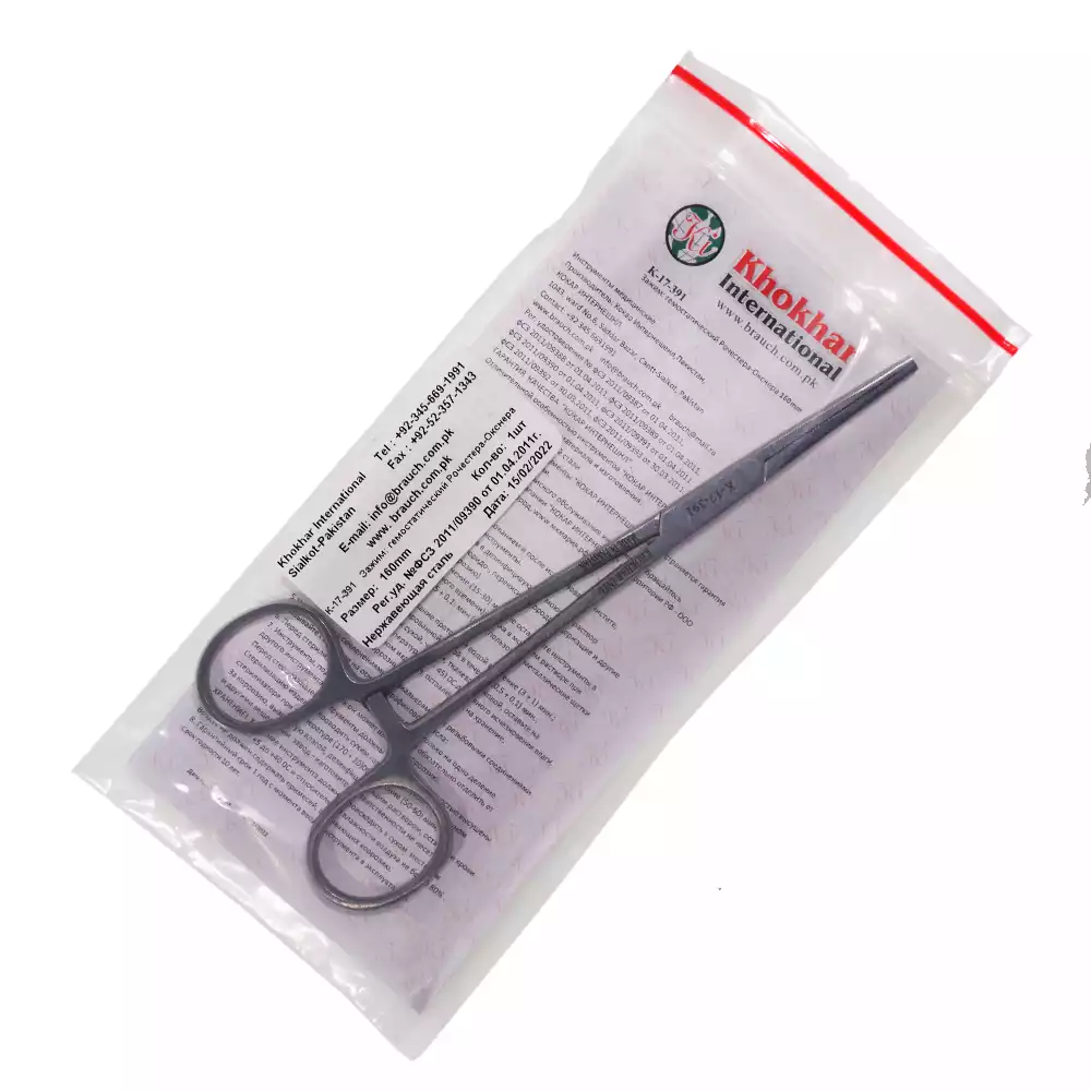 Зажим 17-382 кровоостанавливающий 1x2 зубый зубчатый, изогнутый №1, 150мм (аналог З-21-1), Sammar International