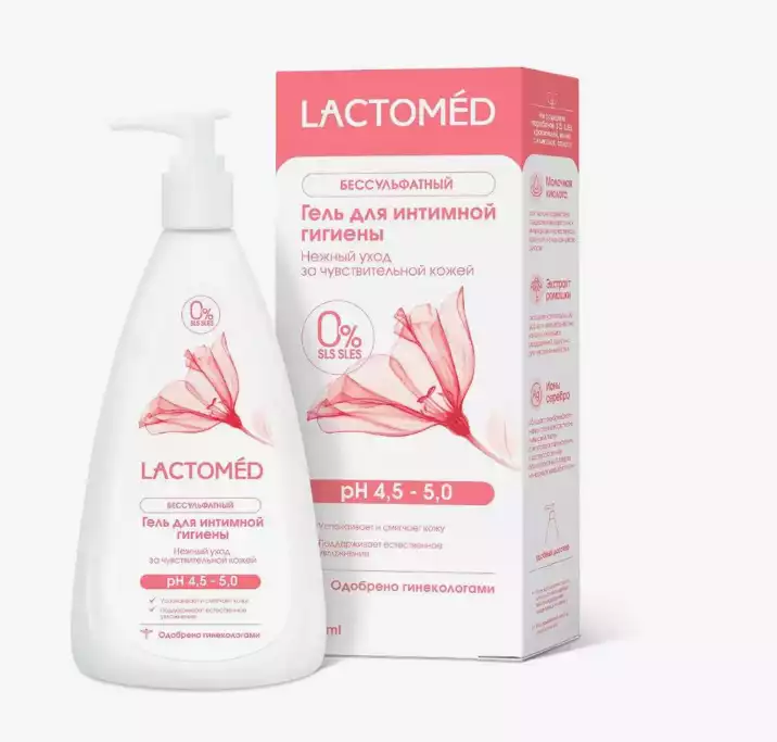Бессульфатный гель для интимной гигиены женщин Лактомед для чувствительной кожи (pH 4.5-5.0) мягко воздействует на кожу, успокаивает и смягчает, обеспечивает естественное увлажнение. Оказывает антибактериальное действие и поддерживает естественную микрофлору. Снимает зуд, раздражение, предотвращает шелушение кожи.