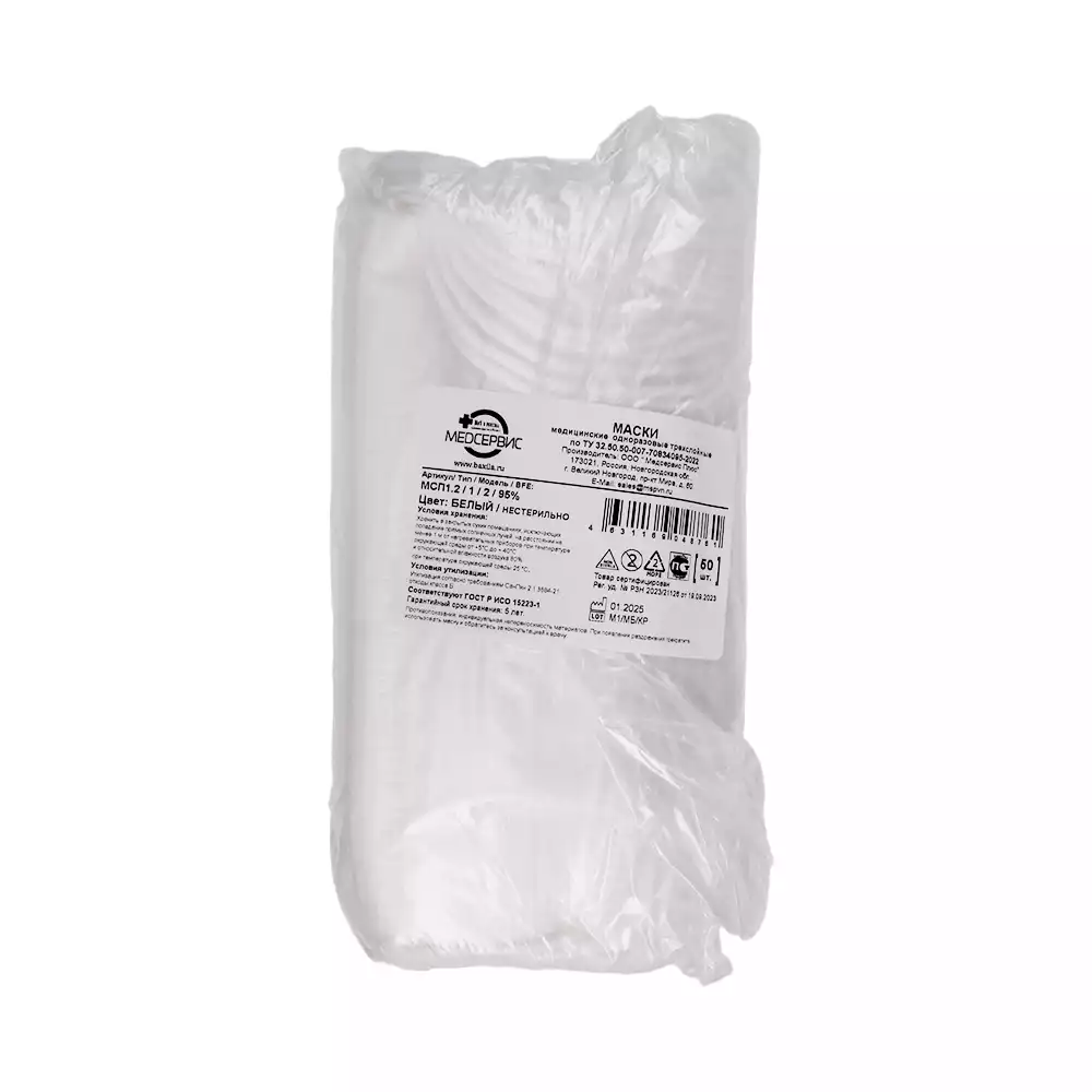 Маска медицинская 3-х слойная, с носовым фиксатором 10см, на резинке (круглая), материал СМС, нестерильная, белая, п/э пакет