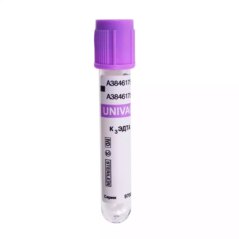 Одноразовые вакуумные контейнеры системы взятия крови и транспортировки в клиническую лабораторию для рутинных гематологических исследований цельной крови: иммуногематологического анализа, ПЦР-диагностики, определения СОЭ, группы крови и резус-фактора, подсчета форменных элементов, скрининга антител и вирусных маркеров. Необходимо иметь в виду, что К3 ЭДТА может занижать количество лейкоцитов. Допустимо использовать в автоматических анализаторах с прокалыванием крышки.